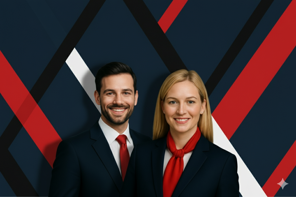 A piros nyakkendő itt is szimbólum: a szakmai kiválóság, stílus és integritás jele.